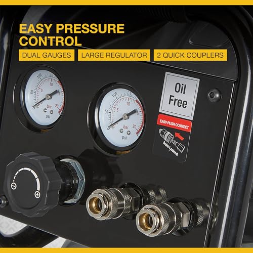 - Quiet Compressor for Home Projects – Delivers quiet operation and ample airflow for various DIY tasks with a durable oil-free design.