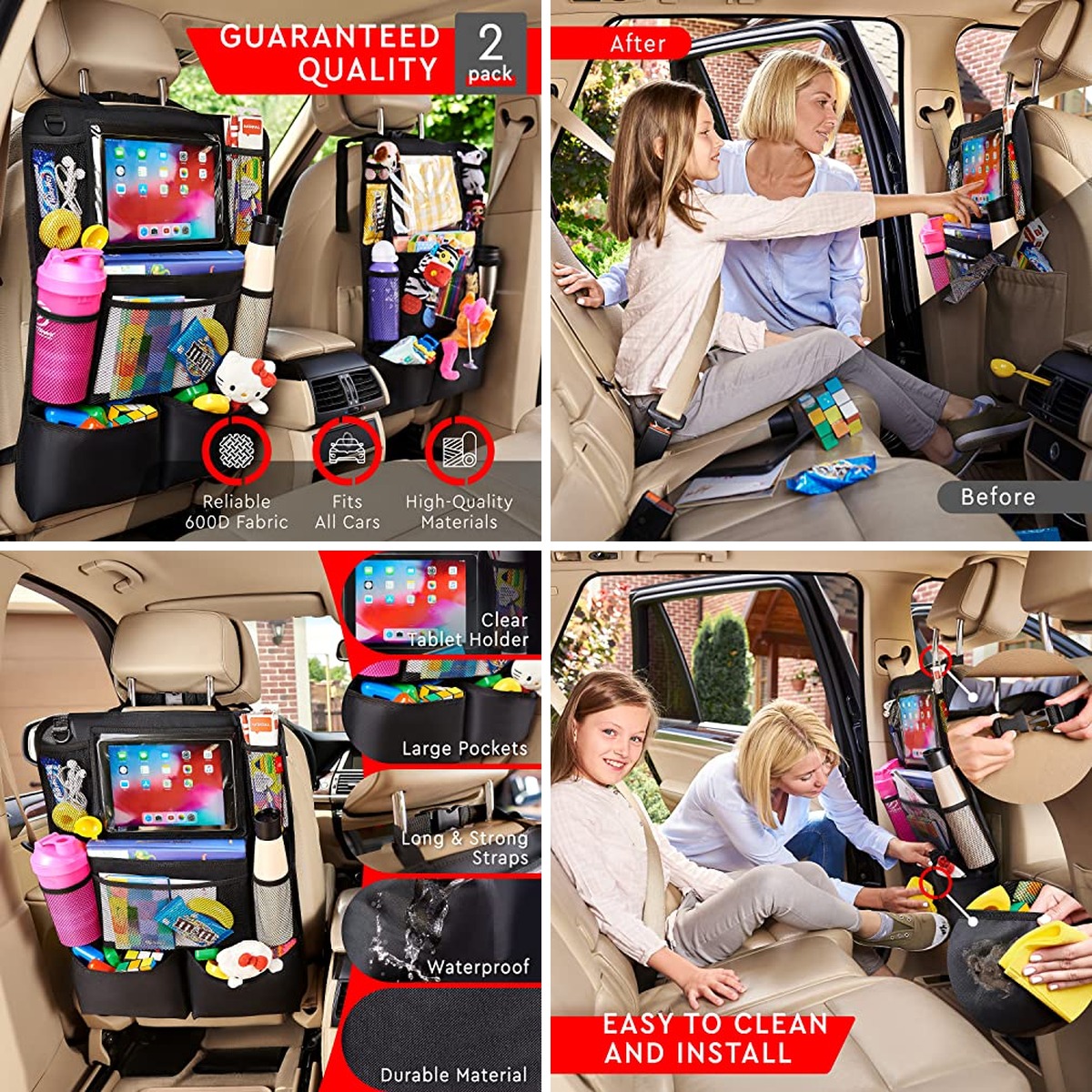 - Car Seat Organizer for Kids (2-Pack) – This two-pack offers excellent value and versatility for keeping a variety of items neatly organized and within easy reach.