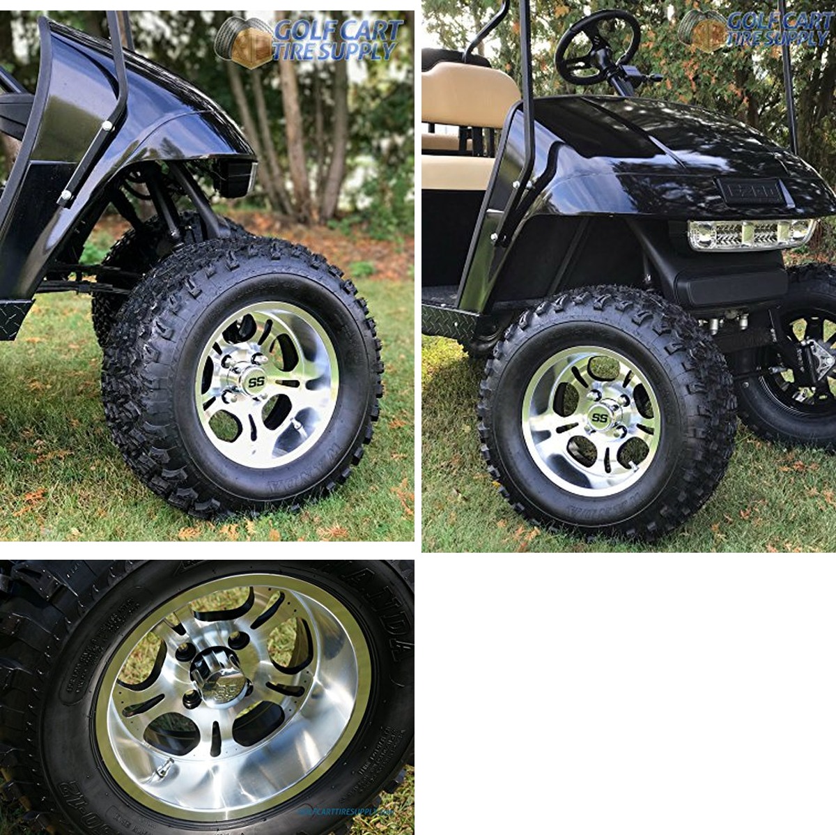 12" LIGHTSIDE Machined Aluminum Golf Cart Wheels and 215/40-12 Low Profile DOT Golf Cart Tires Combo – Set of 4