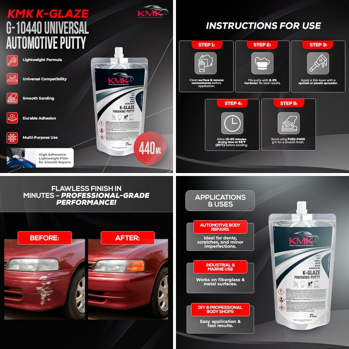 | Product | (2-Pack) Calvana Car Body Filler Repair Kit, Automotive Putty Scratch Filler, Quick-Drying Formula for Minor Touch-ups, Ideal for Car Paint Scratch Removal and Rust, Includes Repair Tools Calvana | Evercoat Body Shop 105035 Pro-Grade Glazing Putty for Filling Minor Dings, Scratches and Low Spots in Aluminum, Fiberglass & More, Easy Mix Hardener Included 13 Fl Oz. EVERCOAT Body Shop | TouchUpDirect Scratch & Chip Putty – Automotive Repair Filler TouchUpDirect |