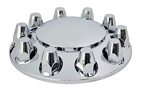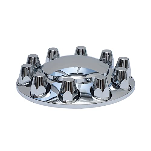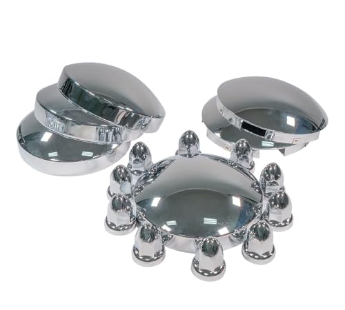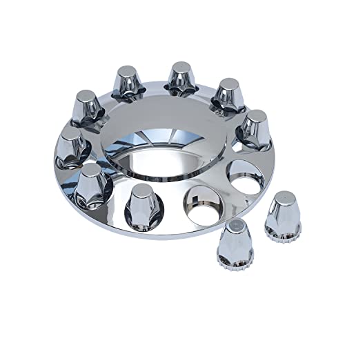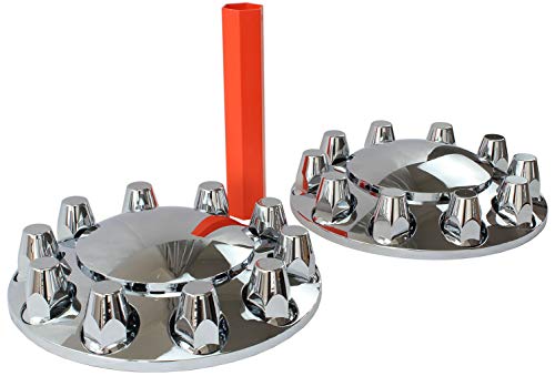 MRJLK Chrome ABS Complete Axle Cover Set with Standard Hub Caps and 33mm Screw-On Lug Nut Covers for Semi Trucks (2 Front)