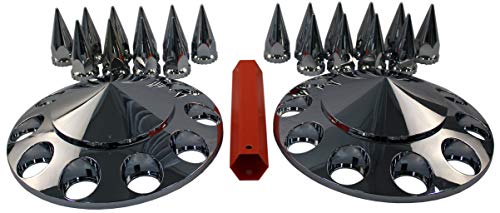 MRJLK Chrome ABS Complete Axle Cover Set with Hub Caps and 33mm Screw-On Spiked Lug Nut Covers for Semi Trucks (2 Front)