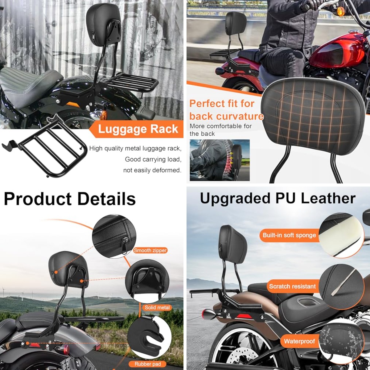 - Chrome Sissy Bar Comfort Pad – Offers a polished chrome finish for a striking visual accent and adds a touch of daring individualism.