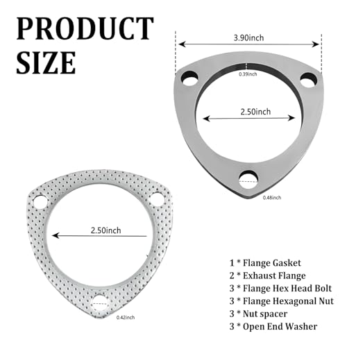 | Product | 2-Bolt 2.25 Inch Exhaust Flange Repair Kit,Stainless Steel Exhaust System Kit with Exhaust Gasket & Exhaust Bolts,Exhaust Pipe Flange Gasket for Automotive Replacement Exhaust Flanges (2.25″) Aokdom | 2.5″ Exhaust Flange Gasket with 3 Exhaust Bolts Tool Set,Stainless Steel Exhaust Flange Repair Kit for Securing Exhaust System Component,Durable Car Accessories Exhaust Gaskets Kit (2.5″) wedfish | ROADFORMER 2 inch V Band Clamp – 2 sets of Quick Release Vband Exhaust Clamp with Flange Stainless Steel for Automotive exhaust system, turbocharger, downpipe and mufflers (2″ – 2 Pack) ROADFORMER |