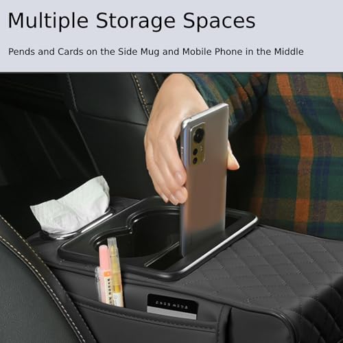 Product | Car Armrest Cushion,5-in-1 Center Console Cover with 2 Storage Bags Cup Holder, Tissue Box Slot, Phone Slot for Sedans, Car Accessories Interior Organizers (Black) Coficoi | FOWSRHRG Car Armrest Storage Box with 2 Cup Holders, 2024 New Car Center Console Organizer for Water Tumbler Paper Towels Cellphones, Universal Car Storage Box Include 2 Car Back Seat Hook FOWSRHRG | 5-in-1 Car Center Console Cover,Multifunctional Arm Rest Cover for Car with Cup Holder,Phone Holder,Pocket,Car Tissue Holder,Leather Height Enhancement Car Armrest Cushion for Most Cars (Black) carleef |