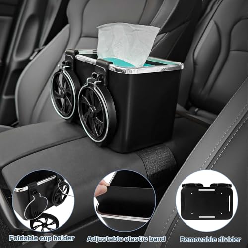 - Car Armrest Organizer Holds Tumblers – Thoughtfully designed to hold tumblers, paper towels, and cell phones, promoting a neat and functional space.