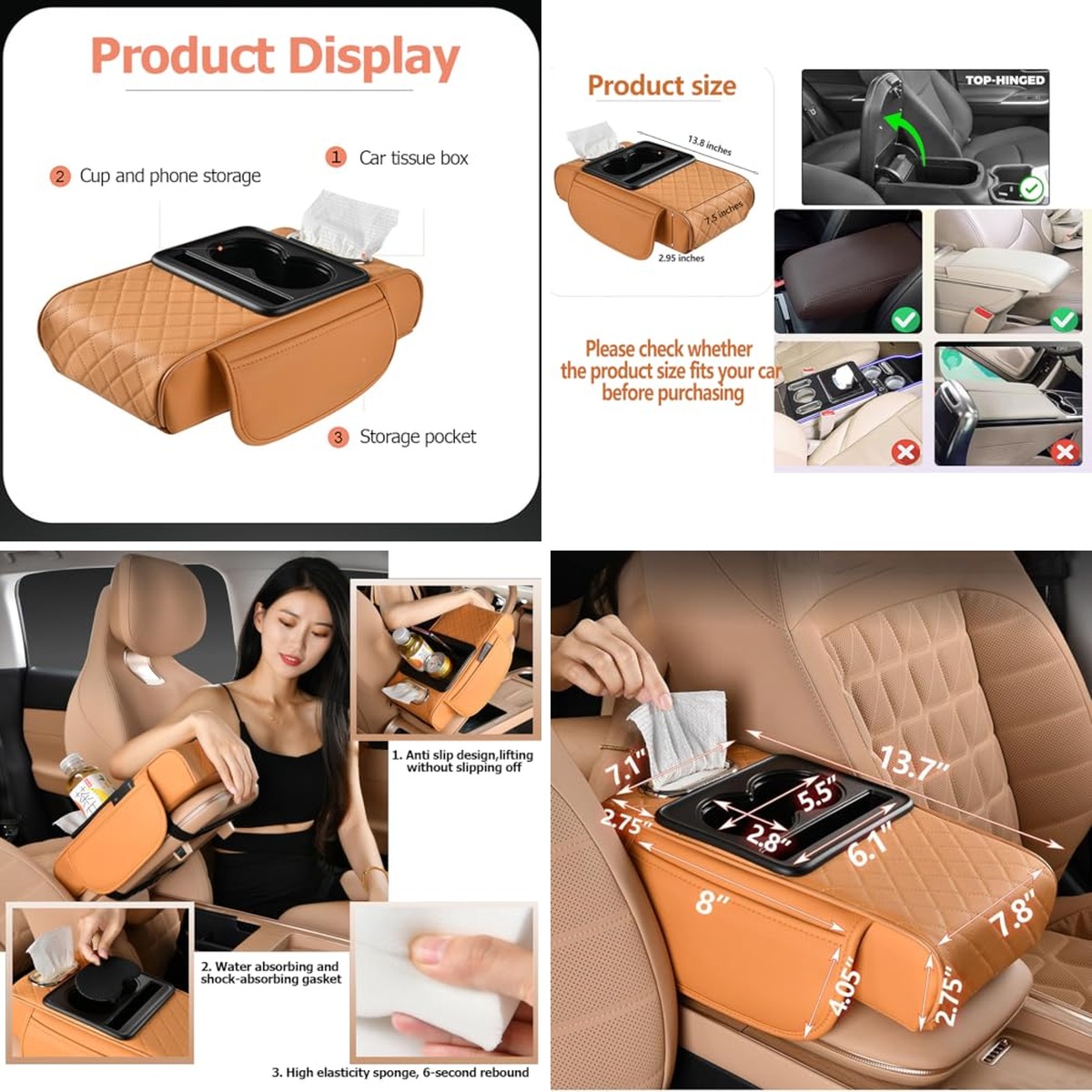Product | Car Armrest Cushion,5-in-1 Center Console Cover with 2 Storage Bags Cup Holder, Tissue Box Slot, Phone Slot for Sedans, Car Accessories Interior Organizers (Black) Coficoi | FOWSRHRG Car Armrest Storage Box with 2 Cup Holders, 2024 New Car Center Console Organizer for Water Tumbler Paper Towels Cellphones, Universal Car Storage Box Include 2 Car Back Seat Hook FOWSRHRG | 5-in-1 Car Center Console Cover,Multifunctional Arm Rest Cover for Car with Cup Holder,Phone Holder,Pocket,Car Tissue Holder,Leather Height Enhancement Car Armrest Cushion for Most Cars (Black) carleef |