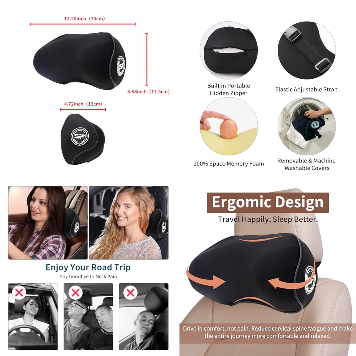 Product | 2 Pack – Car Headrest Pillow for Neck Support, 100% Memory Foam Car Neck Pillow with Sleep Mask – Universal Fit Head Rest Travel Pillow Car Pillow for Pain Relief While Driving(Contains 2 Eye Masks) SPRFUFLY | Crofy 2-Pack Car Neck Pillow, Softness Car Headrest Pillow for Driving with Adjustable Strap, 100% Memory Foam and Breathable Removable Cover, Comfortable Ergonomic Design, 4.7 Inches Thick Crofy | Car Seat Support Pillow Memory Foam Ergonomic – Gray Neck Cushion for Car, Office Chair & Home – Headrest for Pain Relief & Posture Correction Generic |