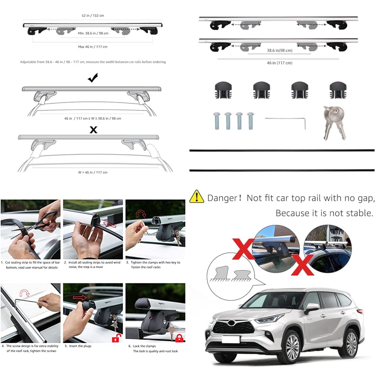 Product | Amazon Basics Cross Rail Roof Rack, 52 inches, Fits up to 46″ Spans between Raised Side Rails with Gap, Pack of 2, Black/Silver Amazon Basics | VEVOR Roof Rack Cross Bars, Universal Fit for Naked Roofs Without Raised Rails/Flush Rail/Black Moldings, 165 LBS Capacity, Lockable Heavy Duty Aluminum Crossbar Racks Roof Rail Rooftop Luggage Canoe VEVOR | MaxxHaul 70115 46″ x 36″ x 4-1/2″ Roof Rack Rooftop Cargo Carrier Steel Basket, Car Top Luggage Holder for SUV and Pick Up Trucks – 150 lb. Capacity, Black MAXXHAUL |