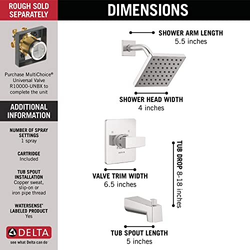 Delta Faucet Modern Single-Handle Chrome Tub and Shower Trim Kit, Shower Faucet with Single-Spray Touch-Clean Shower Head, Chrome T14467-PP (Valve Not Included)