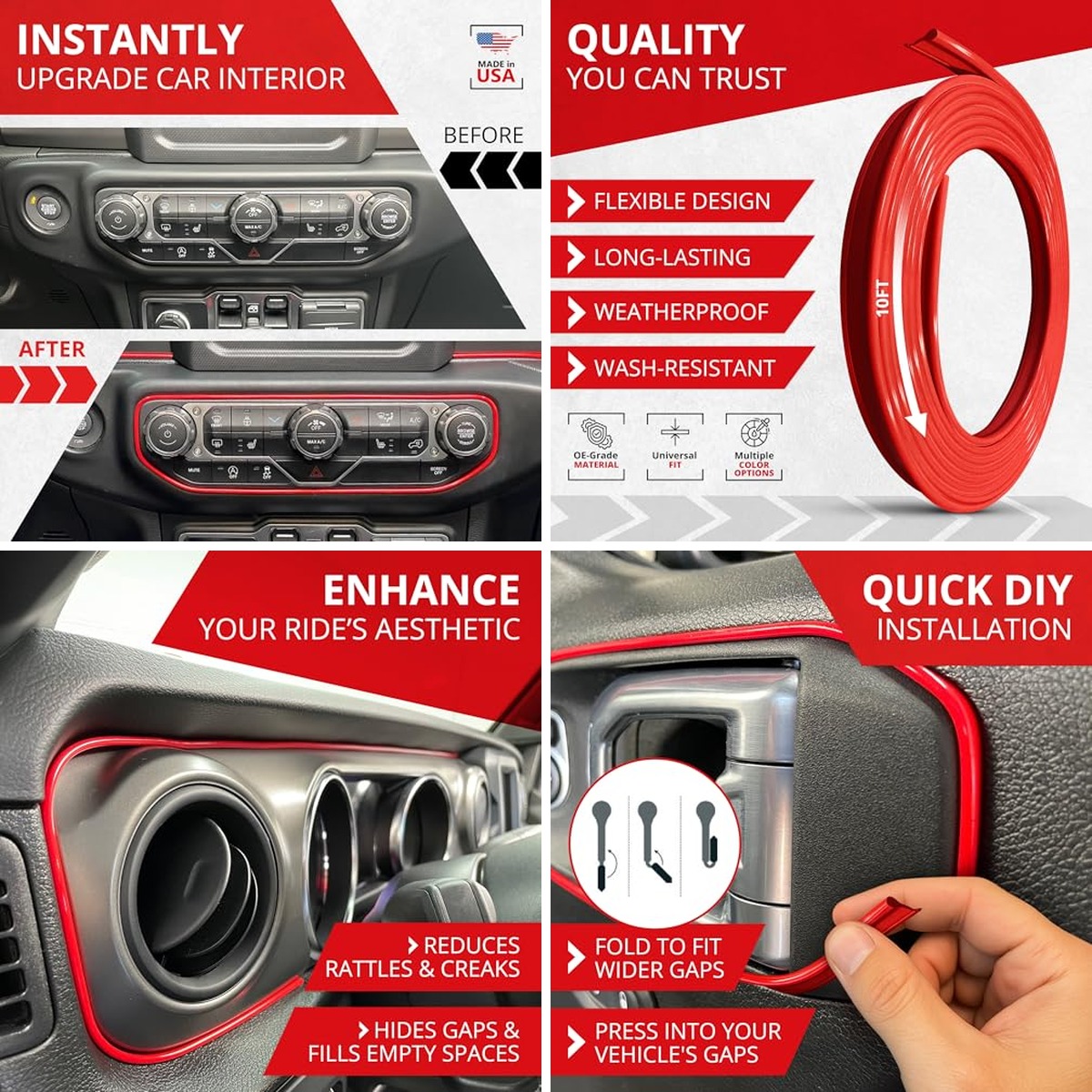 All-Fit Automotive Car Gap Filler – 10 Ft Chrome Trim Molding for Car Accessories Interior – Universal, Flexible Car Interior Accessories for Dashboards, Panels, & Air Vents – Easy DIY Installation