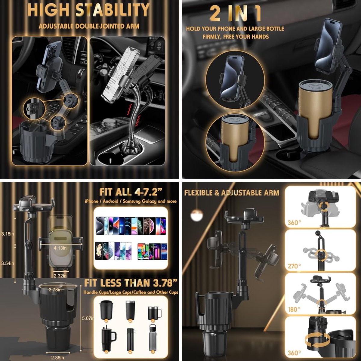 - Car Cup Holder Phone Mount – Features an adaptable design that fits a wide range of smartphones for a secure, stable fit.