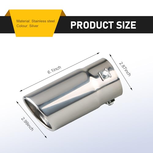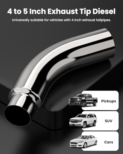 Product | HILMITILE Exhaust Tip, 4 Inch Diesel Exhaust Tip Elbow Tip with a Clamp, 4″ inlet 6″ Outlet Chromed Exhaust Tip for Pickups, Trucks and Cars HILMITILE | Stainless Steel Car Exhaust Tip, 2.5″ Inlet 3.3″ Outlet Adjustable Chrome-Plated Finish Exhaust Tailpipe, Car Exhaust Pipe Modification Tail Throat Tail Pipe, Fit for Most Cars (Straight, Silver) smilfuy | Qurbuns Car Exhaust Tip, 1.9″-2.8″ Inlet Adjustable 3″ Outlet Muffler Tip with Adapters, Stainless Steel Straight Exhaust Tail Tip, Sport Modified Accessories for 1.9″-2.8″ OD Tailpipe (Silver) Qurbuns |