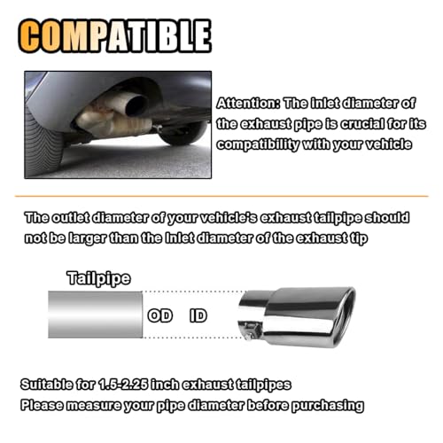A: Measure the outer diameter of your existing exhaust pipe. Most car exhaust tips are designed to fit pipes within a specific diameter range, typically from 2 to 3.5 inches.