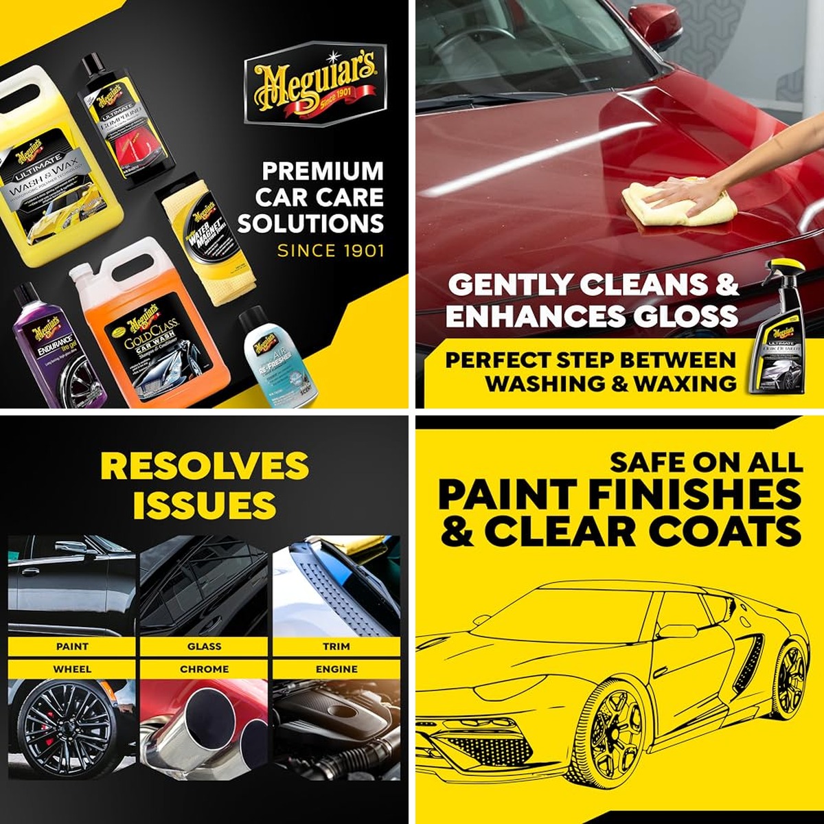 Best For | Maintaining a freshly washed look between washes | Maintaining paint and wax protection | Quick cleaning and gloss enhancement |