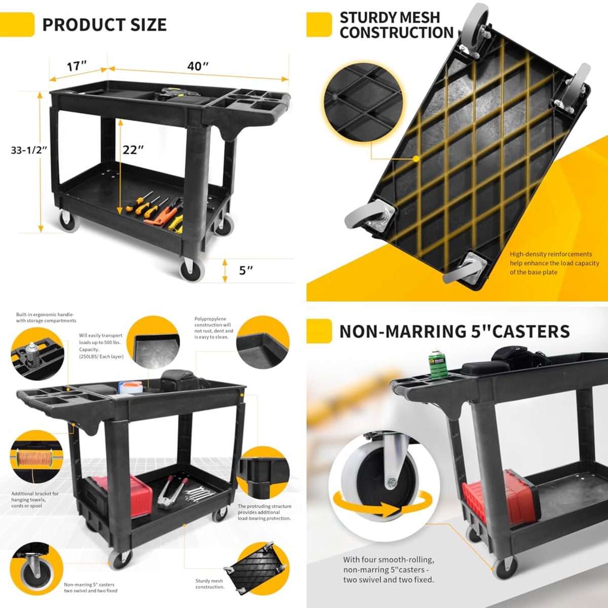 Product | MaxWorks 80855 500-lb Utility Service PP Cart With Two Trays and Wheels 30 Inch X 16 Inch Overall Dimensions MaxWorks | AirWire Tool Chest,5-Drawer Rolling Tool Storage Cabinet with Enhanced Packaging, Detachable Top Tool Box, Metal Tool Cart for Garage Workshop,Black, ATC001BK AirWire | WEN Service Utility Cart, 500-Pound Capacity, 40 x 17-Inch WEN |