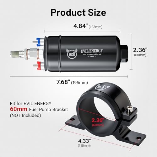 EVIL ENERGY External Inline Fuel Pump Electric 300LPH High Flow 12V with 60MM Bracket Clamp Black