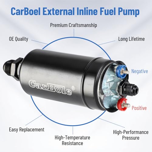 CarBole Universal Electric External Inline Fuel Pump, 12V 300LPH High Flow Rate, with Mounting Bracket Clamp