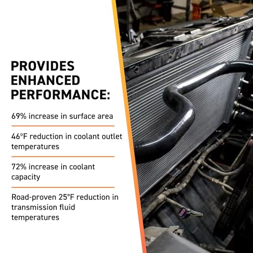 Key FeaturesDirect fit for Chevy Silverado Suburban Tahoe Escalade 4.8L 5.3L 6.0L 6.2L V8. Shuttered design T-5052 fan shroud to guaranteed airflow passes high efficiently. Direct OE replacement with drop-in precise fitment and easy installation.OEM Fitment: Precisely manufactured to meet original equipment manufacturer (OEM) specifications. Advanced Sealing Technology: Utilizes state-of-the-art welding techniques and high-quality sealing materials. Enhanced Cooling Capacity: Features an increased surface area for improved heat exchange.Material – Aluminum – All of our products are made of the best materials and advanced manufacture technique to enchance cooling perfomance. Easy To Install: Light weight direct bolt-on replacement, stronger & higher capacity for coolant. This Aluminum Radiator is at least 30%-45% more efficient than stock ones.