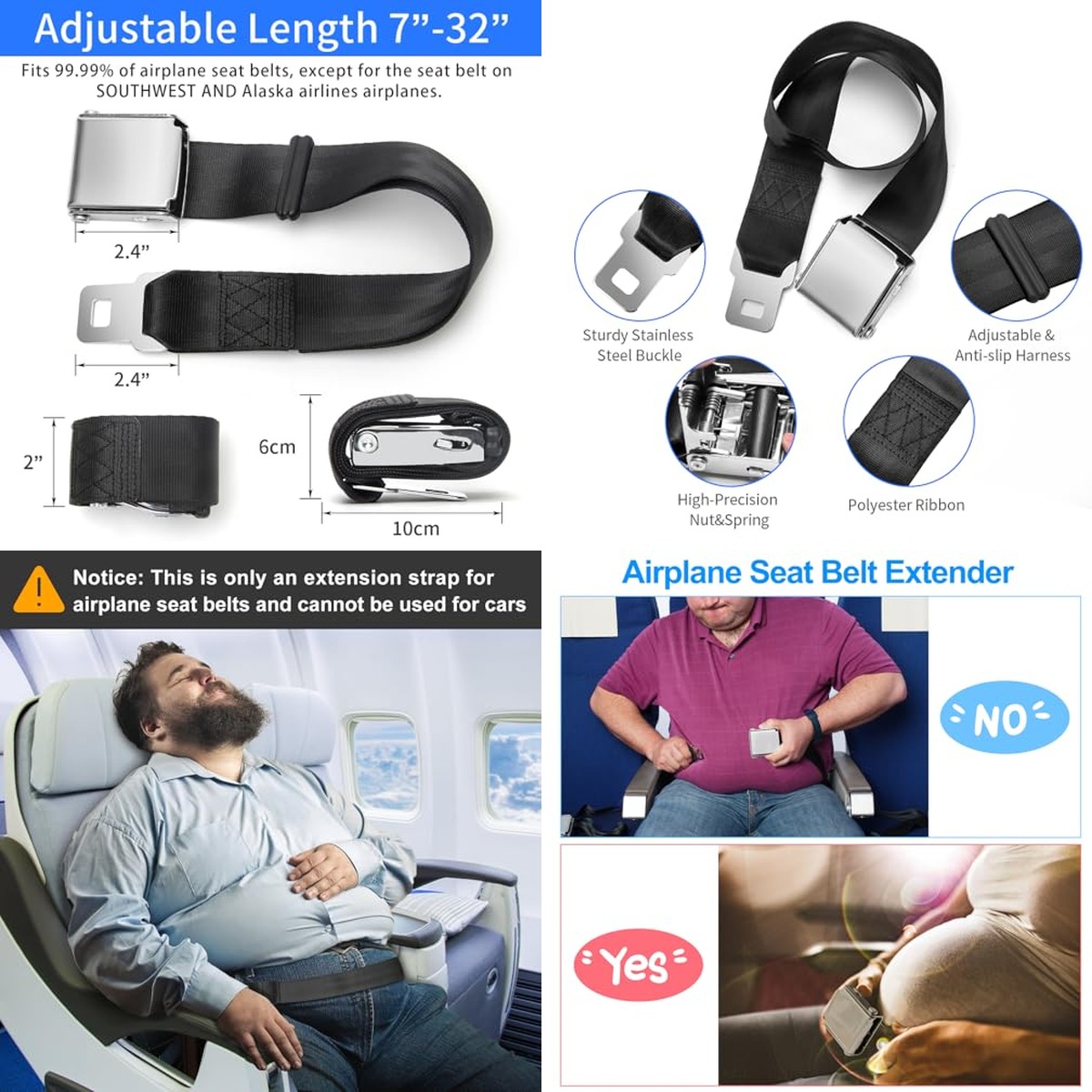 Product | Coolrunner Airplane Seat Belt Extender, Adjustable 7-32″ Airplane Seatbelt Extender Fits Most Airlines Free Carrying Case Black(Cannot be Used for a Car) (one fit most) Coolrunner | 2 in 1 Airplane Seat Belt Extender – Adjustable Length, Fits All Airlines Including Southwest Airlines' 737-800/737MAX8 Hadwoer | Nine-Tailed Fox 4 Pack Belt Clips,Universal Fit-Black/White Grid nine-tailed fox |
