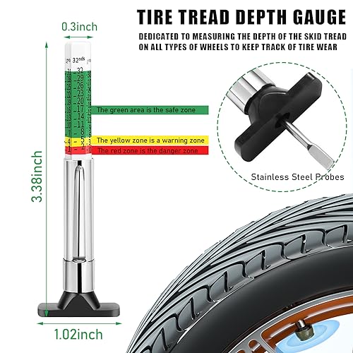 Augeny Car Tire Tread Depth Gauge, 32nds Accurate Smart Color Coded Tire Tread Depth Measurement Tool, Professional Vehicle Tire Thread Meter Tool for Car, Motorcycle, SUV