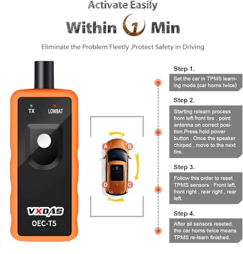 VXDAS TPMS Relearn Tool for GM Tire Sensor TPMS Reset Tool Tire Pressure Monitor system Activation Tool OEC-T5 for GM Buick/Chevy/Cadillac Series Vehicles…