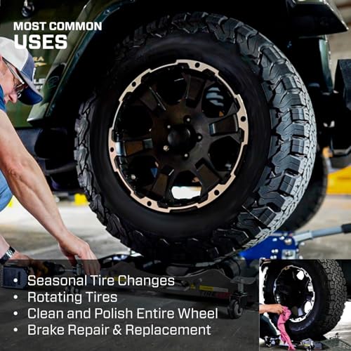 Key Features• Easily lift up to 150 lbs. tires; Universal Compatibility; Precision Alignment; Seamless Mobility & Stability; Robust Design and Effortless Loading; No Assembly Required.• Effortless tire changing and rotation; Easy to use with a roller plate for alignment; Compact and portable design; Rugged construction.• Wide compatibility with GM vehicles (2006-2023); Saves time and money; Essential and easy to use; Superior quality and performance; Maximizes safety.