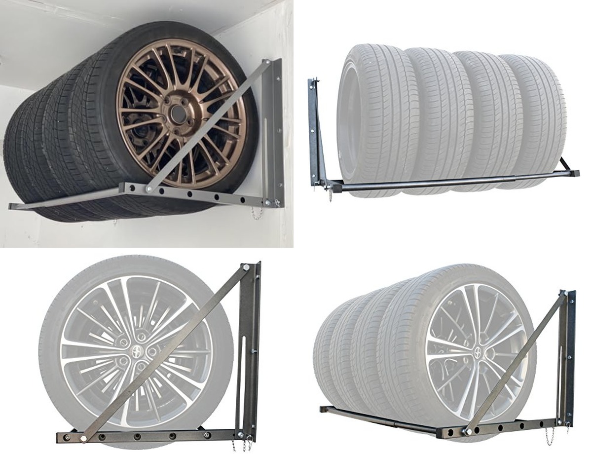 - Explore foldable and wall-mounted tire racks for efficient, space-saving storage solutions in garages or sheds.