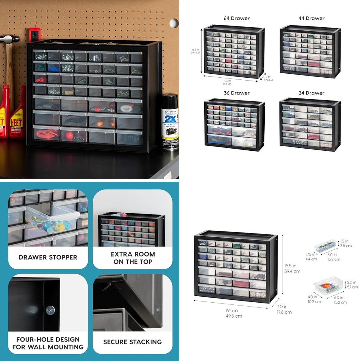 IRIS USA Screw Tool Organizer Small Parts Cabinet, 44-Drawer, Electronics Hardware Nuts and Bolts Plastic Storage Drawers Garage Storage, Stackable Bead…