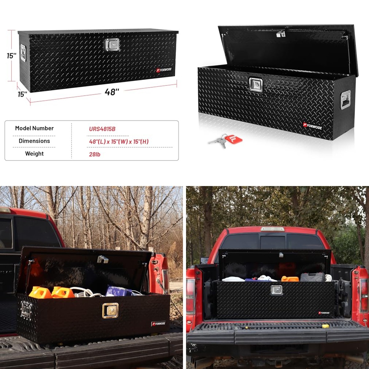Product | FORWODE 48 Inch Truck Bed Tool Box Aluminum for Pickup RV Toolbox Truck Bed Toolboxes Heavy Duty Waterproof Truck Chest with Handle and Lock – Black FORWODE | YITAMOTOR Heavy Duty Aluminum Truck Bed Tool Boxes 49 Inch with Sliding Shelf, Diamond Plate ToolBox for Pick Up Truck RV Trailer, Chest Storage Organizer with Lock and Keys YITAMOTOR | VEVOR Truck Bed Tool Box, Heavy Duty Aluminum Tool Box with Diamond Plate, Storage Toolbox Chest Organizer Supports up to 220 lbs, Ideal for Pickup, Truck Bed, RV, Trailer, 30.3 x 24 x 9 in, Silver VEVOR |