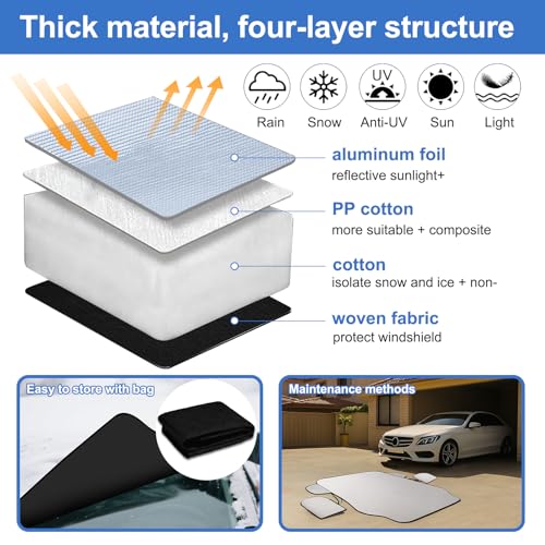 - Durable car windshield covers protect against snow, ice, and frost, eliminating scraping and ensuring clear visibility in winter.