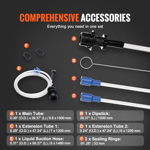 - Fluid Extractor for Garden Fluids – Features a long hose and extension tubes for diverse applications in outdoor equipment maintenance.
